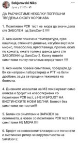Дневните извештаи на Министерството за здравство покажуваат само колкав е бројот на новооткриени со позитивен ПЦР тест, но не и бројот на вистинските болни . Болест без симптоми не постои.